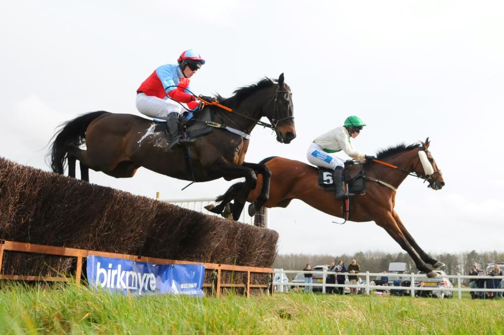 Ladies Race Runners Race to the last fence at Ston